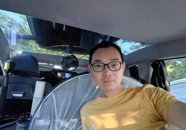 他的车是一辆常规大小的新能源汽车,每天晚上他把后座放平,驾驶座往前移,才能腾出一个 1.8 米长、0.6 米宽的床位。他在上面铺上凉席,搭起蚊帐,阻挡公园里肆虐的蚊虫。