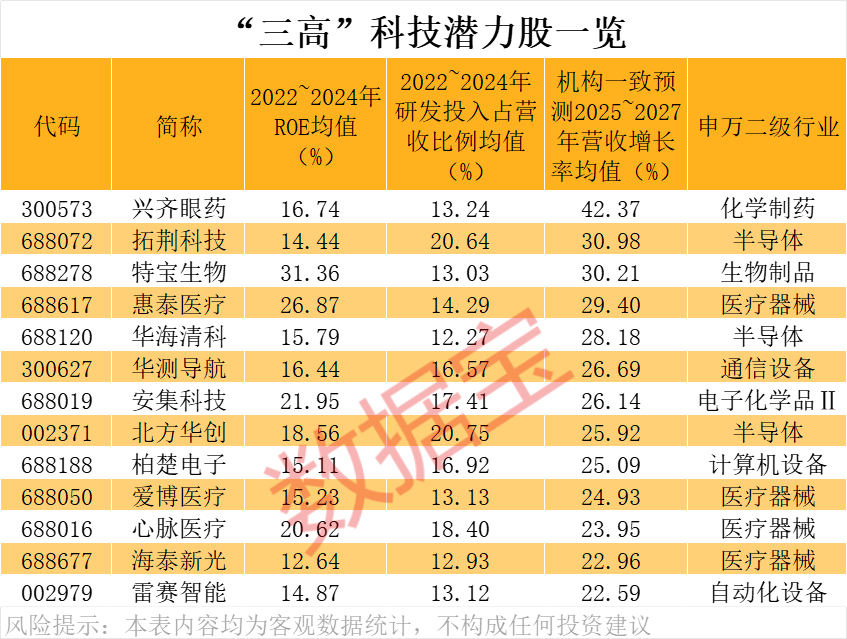 “三高”科技潜力股仅13只